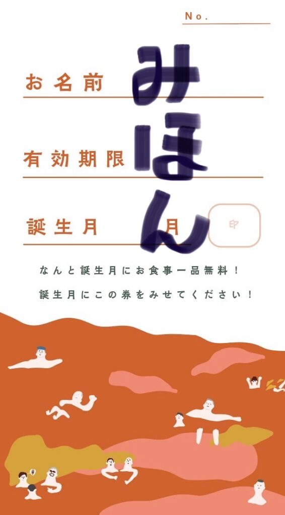 今年から年間券を購入された方には誕生月に使える「食事1品無料券」↓を進呈しています。