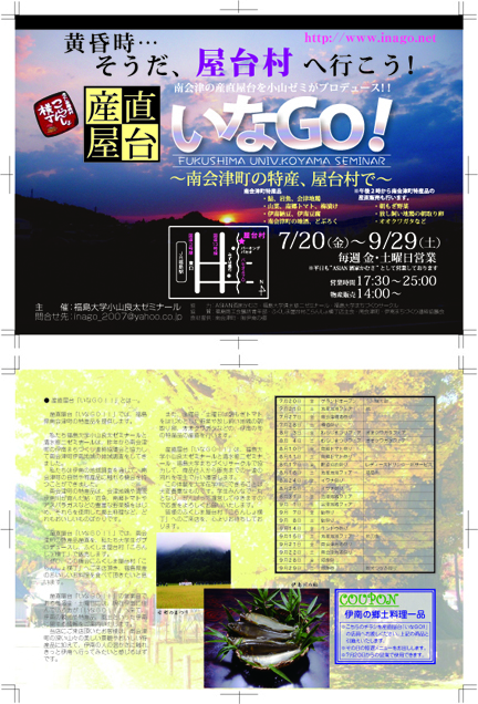 その時に「おらぁにゆっくり考えている時間はねぇべ!とりあえずやってみっぺ!!」「走りながらどこさ行ぐが考えっぺ!!」ということで「伊南まちづくり連絡協議会」は通称「いなGO!」として様々な活動を展開ました。