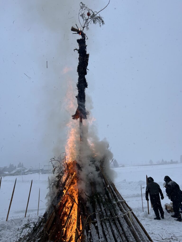 強烈な北風にあおられて道城おんべは勢いよく燃え上がります。