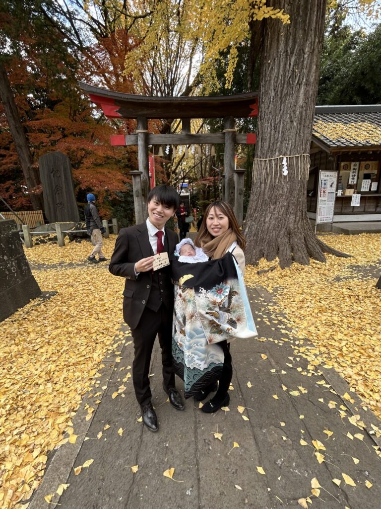 大きなイチョウの木があって(古町の大イチョウよりは小さい)黄金の絨毯の中のお宮参りでした。