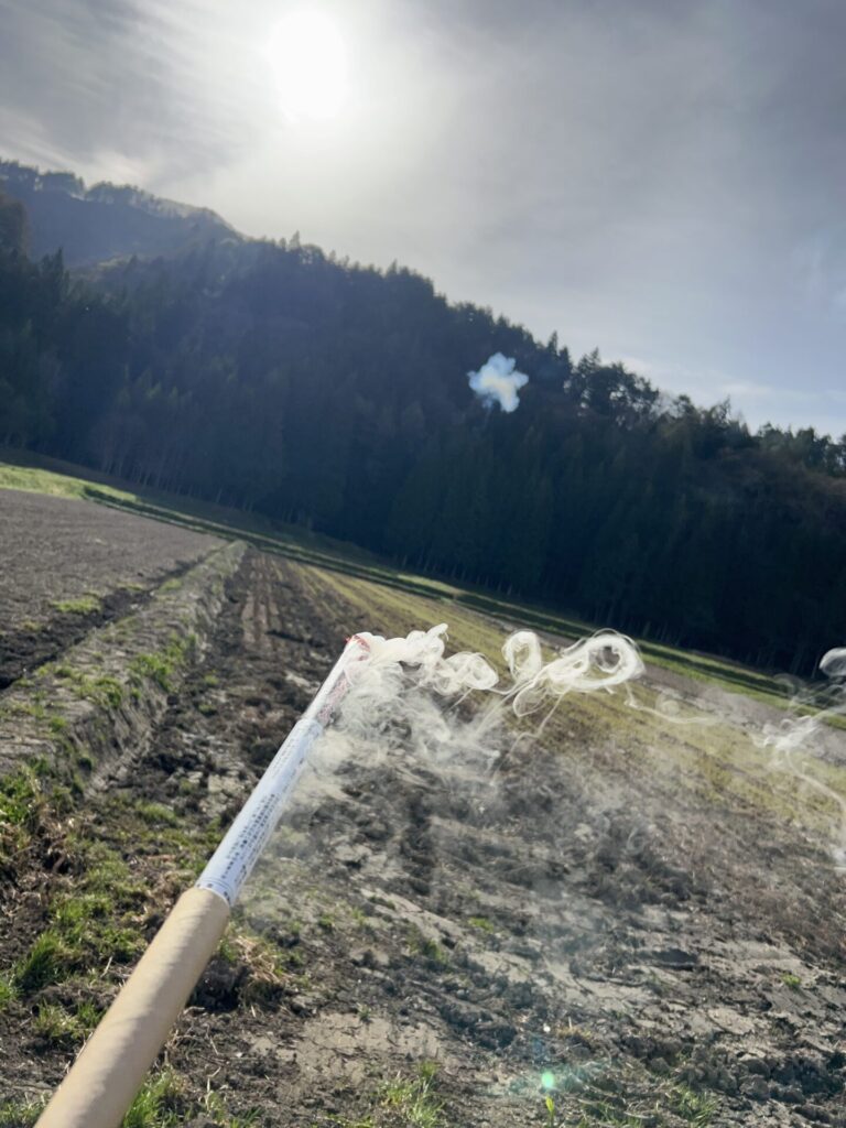 猟友会の方から5連発の花火を手渡され