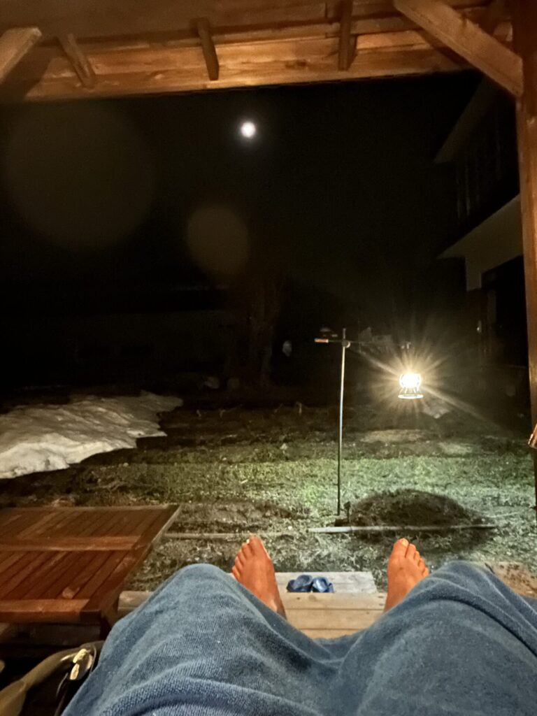 「雪どけの ととのって観る 三日月に」